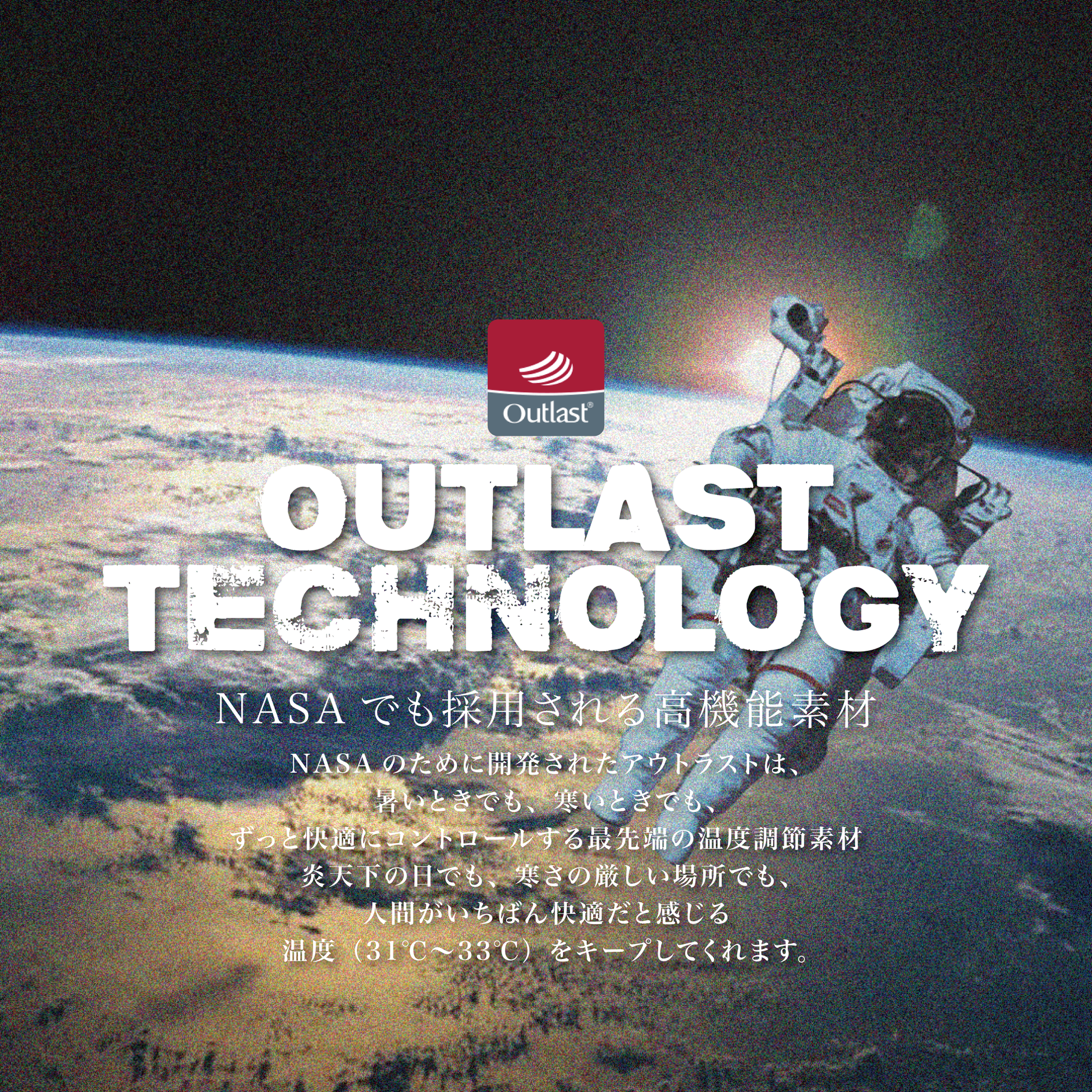・NASA開発「アウトラスト」生地を採用