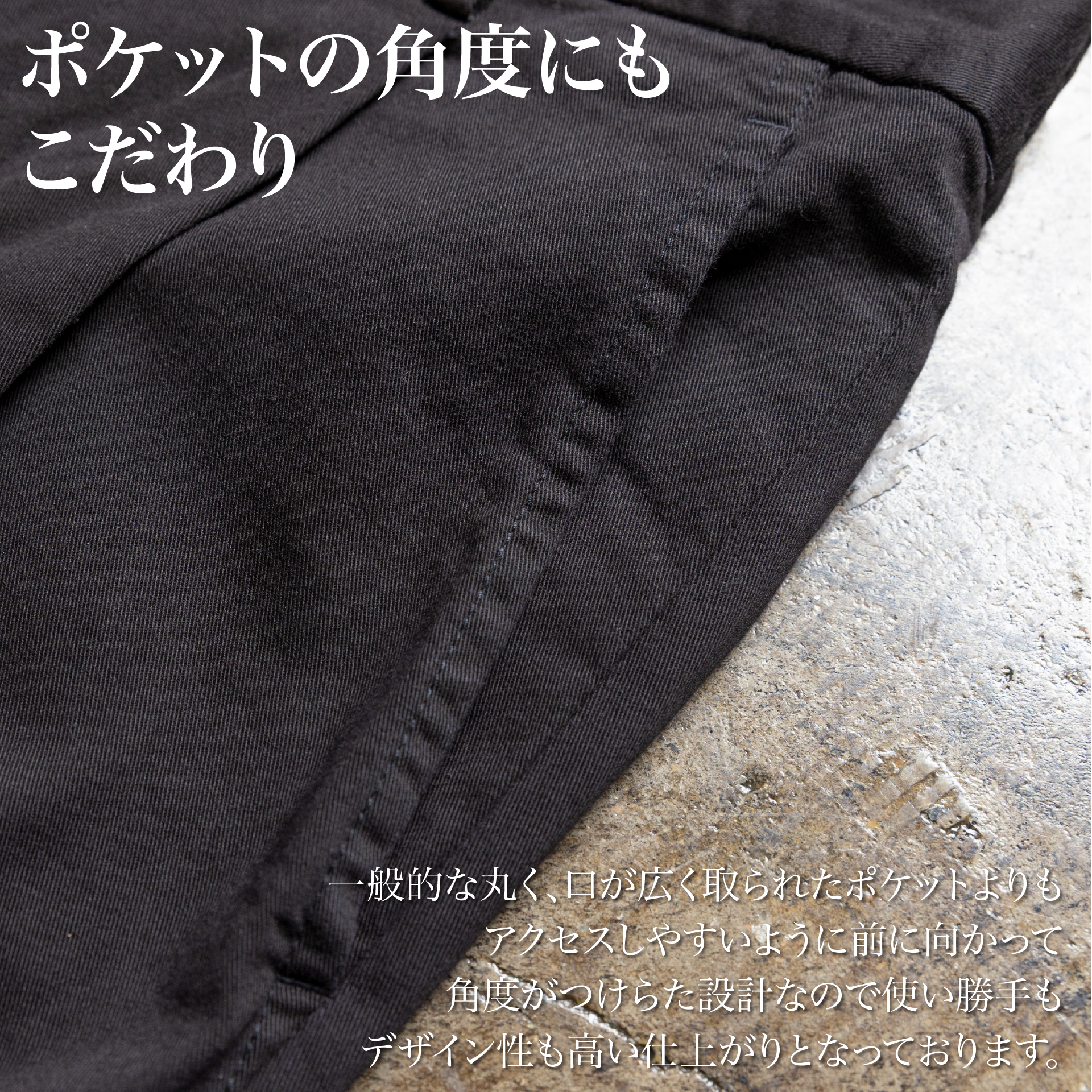 ・ポケットに手を入れやすい角度で縫製