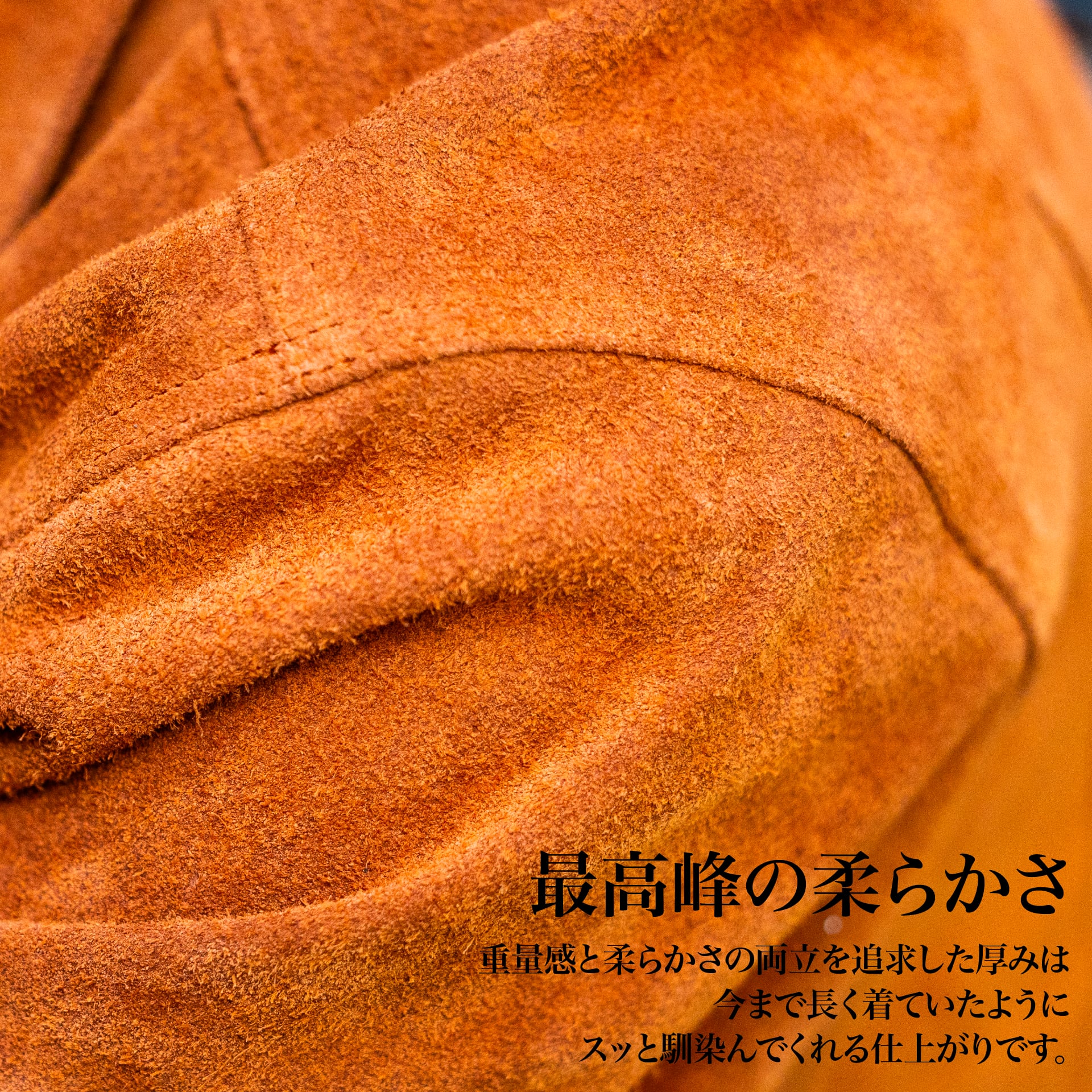 ・表地は日本の信頼性のある「カウスウェード」(1mm厚の牛革を起毛)