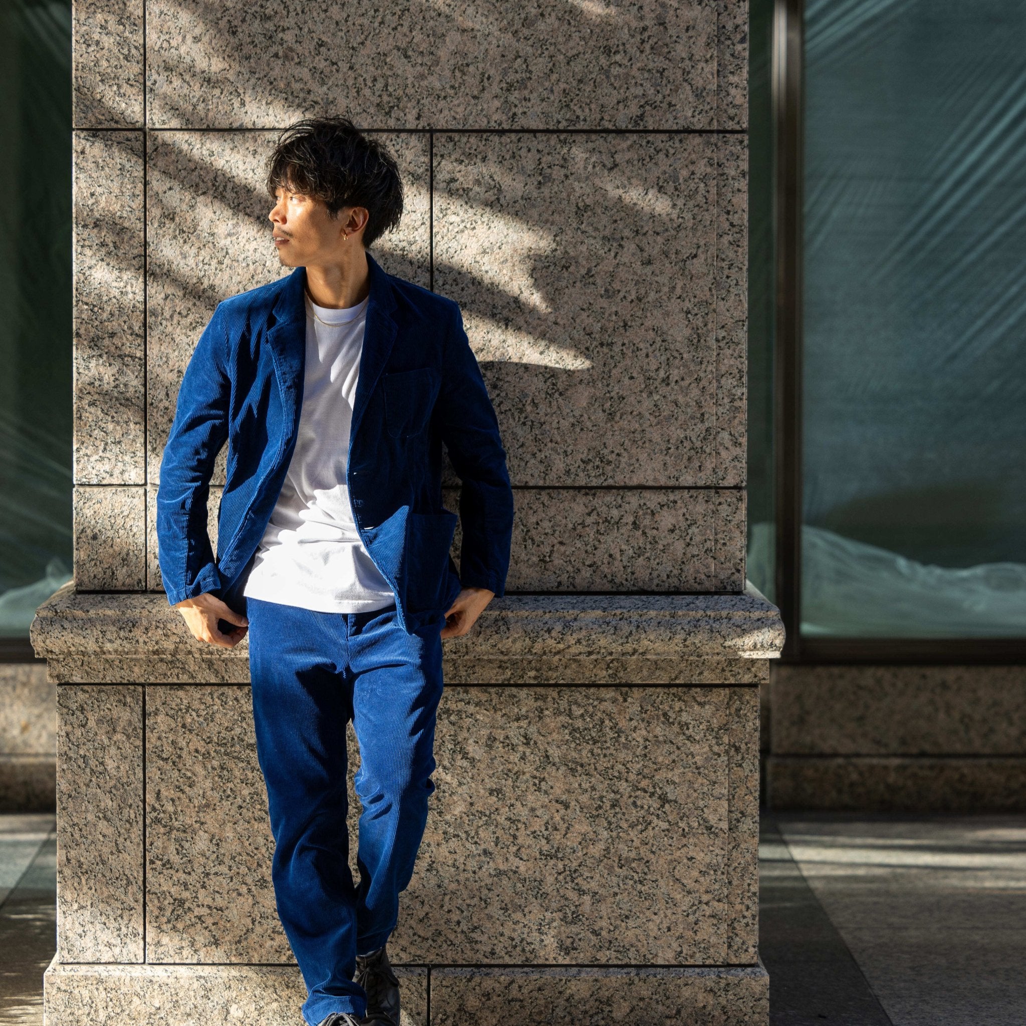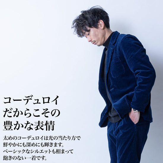 ・コーデュロイの「インディゴ」染めは光の加減で「カジュアル」にも「ドレスライク」にも早替わり