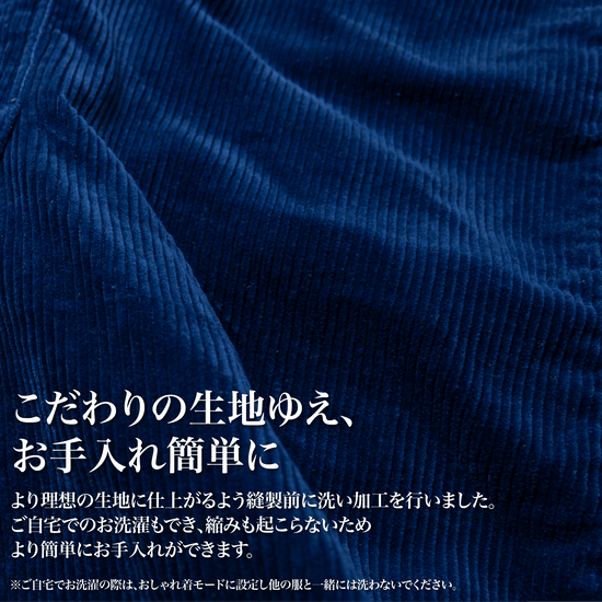 ・コーデュロイの「うねり」に細見え効果がありシルエットが尚美しく表現される